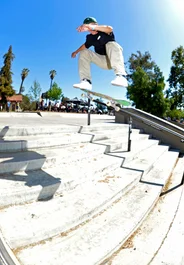 Antonio Durao completely kills the stair and rail area, this time with a Switch Flip.