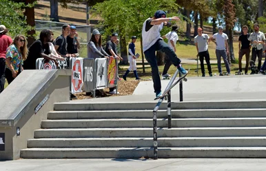 Second place qualifier Micky Papa showed no remorse with this Kickflip Backside Noseblunt down the hubba.