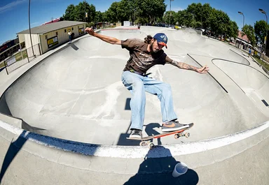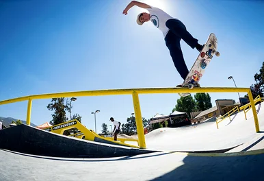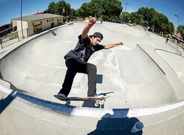 Greg Valencia don’t need your tricks, he’s got his own; Nollie Backside 180 Tail-Grab North.