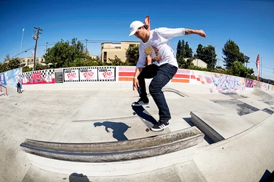 With 1st try luck, he steps it up to the Noseblunt Slide.