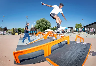 Hi-Yah! Miles Lawrence kicks out the jams on a One-Foot Front Board.