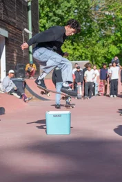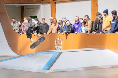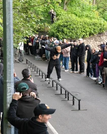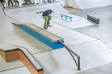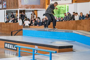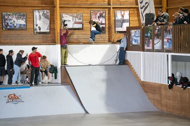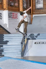 He took over at the long flatbar and also took over inside. Domo with a flick front 50 to make it to semi-finals