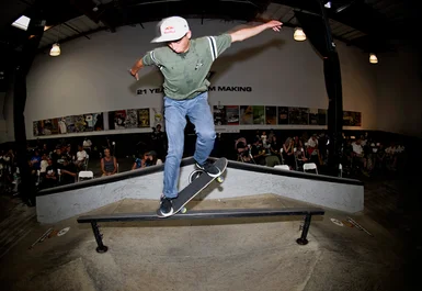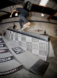 Jonathan Henderson gets the Independent Best Trick Comp started off with a Tre Flip Smith Grind.