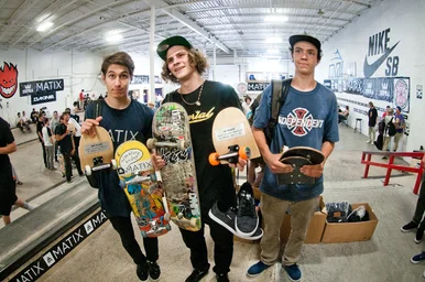 Product toss! Thanks for the rad weekend everybody! Big thanks to Matix, Supra, Familia Skateshop, Red Bull, PBR, Bones, Dakine, Transworld Skateboarding, Send Help, Hellaclips, and Independent trucks!