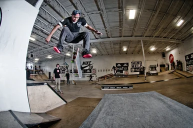 Just barely pulling it off before the end of the best trick contest, Dylan Williams landed this back 180 fakie 5-0 kickflip out.