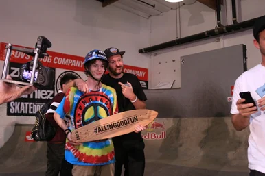 Ricky Melnik getting front row seating for the DVS Best Trick contest.