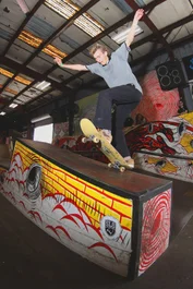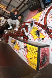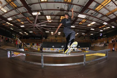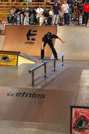 Noah holding onto a Boardslide across the whole flat board and straight to First Place.