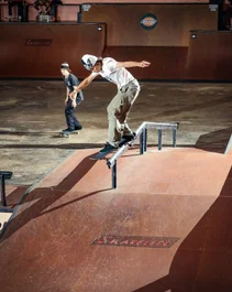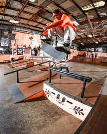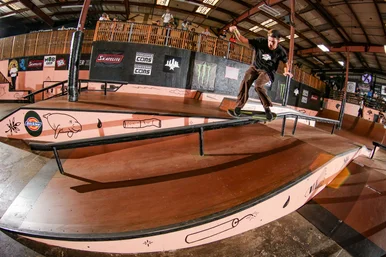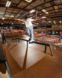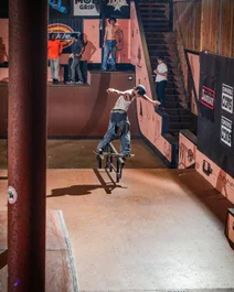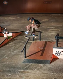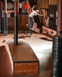 Classic Markus maneuver w/ a Frontside Flip over the bump to bar.