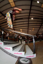 James Cobb, our very own team rider was inside starting off the bump to bar best trick. Full Cab over the bump.