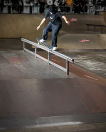 Marcos would end up taking First Place by Nollie flipping out of this Crooked Grind, among other crazy moves.