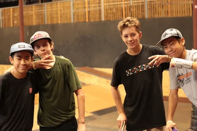 The Noel twins are here, which means double ripping. That's Nick with a front blunt down the new hubba. Is he the evil one? I can never remember...