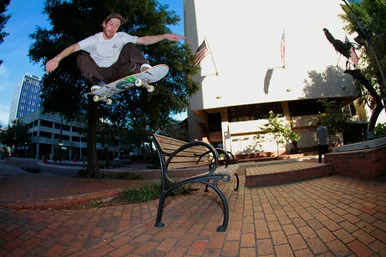 You may remember this bump to bench from Reynolds' SOTY part, but years later it got moved a little. Ben Gore wasn’t afraid to get his feet wet on this Ollie.