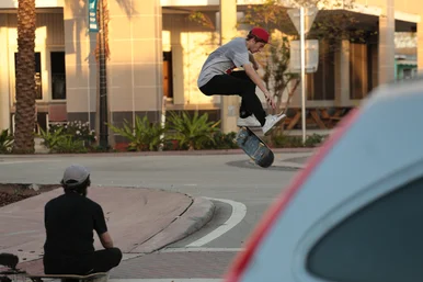 Jimmy ollies up a five stair no problem and also does a trick down. Make sure to check the footage.