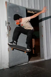 Andy went back inside and celebrated by skating a little. Catching this BS Flip with style.