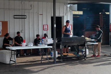 Everyone starting rolling in for the session and Jay Turner, our newest addition to the team was firing up the grill and getting things started in the courtyard.