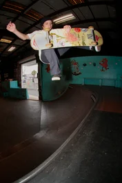 Cash Gaddes, the Flying Jersey, Alley Oop BS 180 into the roll in.