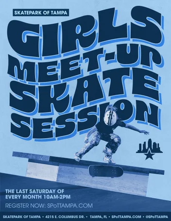 We dedicate the last Saturday of every month to women skateboarders in the area, providing an opportunity for them to connect, relax, learn from one another, and enjoy a group skate session. Each event features complimentary food and exciting giveaways. Attendees can also take advantage of a private, air-conditioned room to unwind and share their newly learned skateboarding tricks. Experienced local skateboarders will be on hand to offer guidance and coaching to anyone interested. These gatherings are laid-back and offer a wonderful chance to make new friends. Everyone is welcome to join, whether for a single session or regularly!
