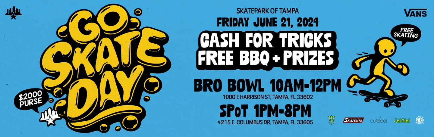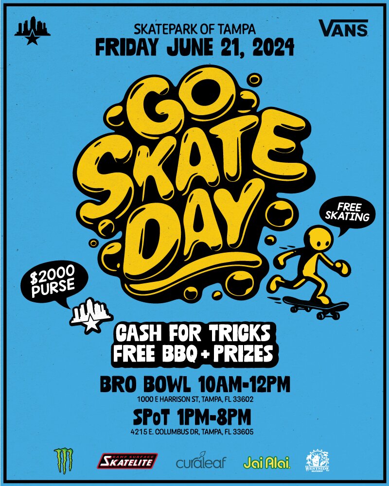 On June 21st each year skateboarders around the globe blow off their regular obligations and just go Skateboarding. While a lot of us do this every day, this day in particular is set aside for it and celebrated. Join SPoT around Tampa Bay and Go Skateboarding!