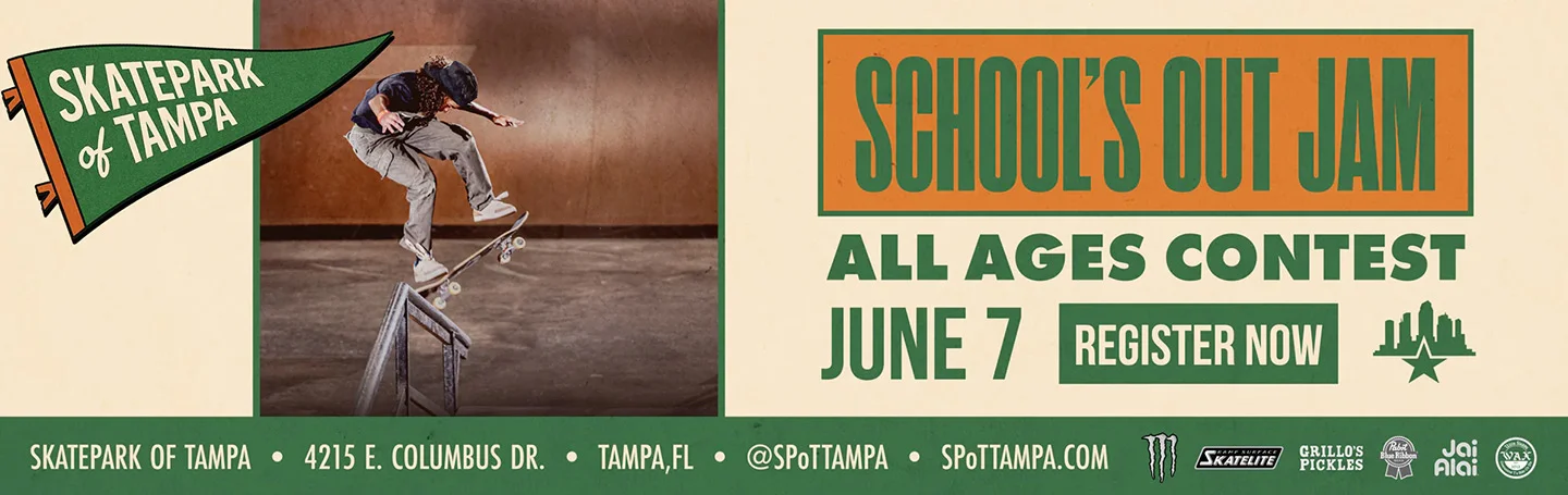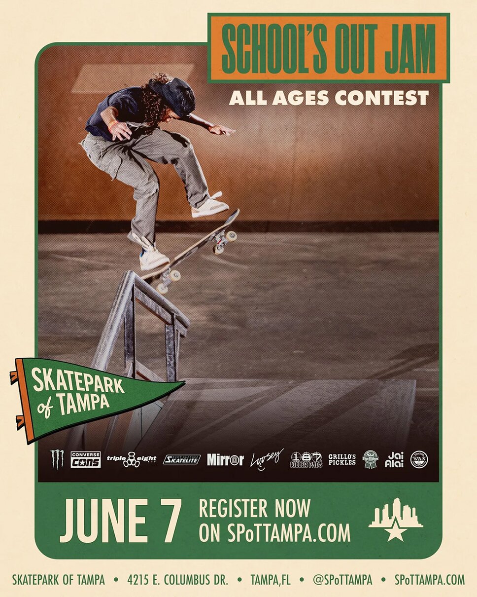 If you get injured during the contest or just can't make it for some reason, hit up info@skateparkoftampa.comand we'll get you a refund.