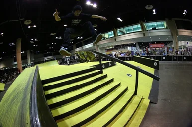 Security had their hands full trying to stop everyone from skating in the convention center. Could you pass up skating on this ground? Manny couldn’t help but get a 360 flip in.