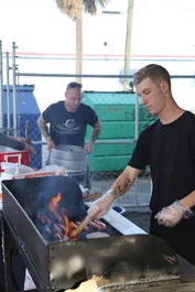 Fire it up! Sterling Gainer manning the grill.