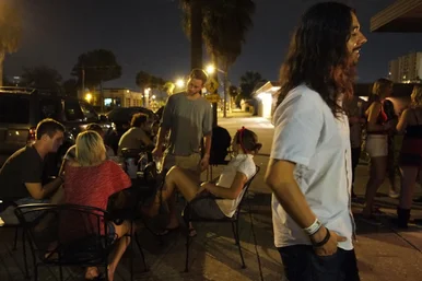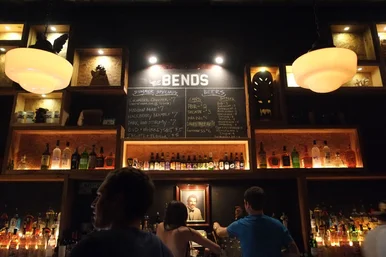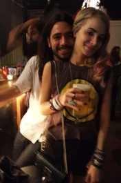 We're at The Bends now, another local bar down the street. Jorge and Devin, cute couple cuddle photo of the night.
