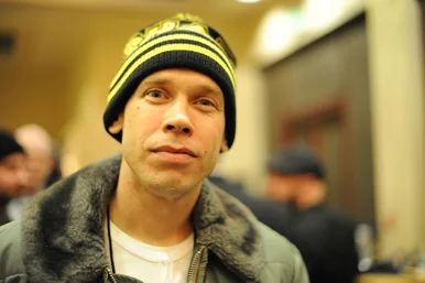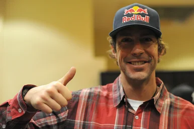 Travis Pastrana in between double back flips or whatever it is they're doing on motorcycles these days.