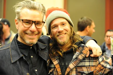 Omar Salazar and Justin Eldridge. Two different styles on the board, one and the same style at the bar partying.
