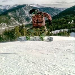 Earlier that day, Clements and I went extreme on the snow sliders. Picture a two story high jump on the right and a drop off as big as those mountains on the left with me meron grabbing for days over the gap.