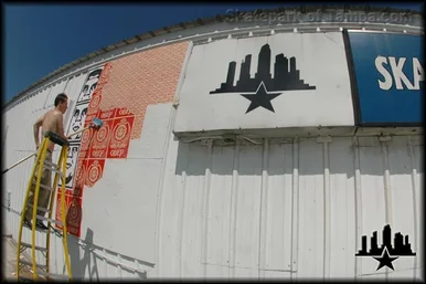 Graffiti artist Shepherd Fairey "Obey" is getting up by skirting the wheat paste poster techinique. He's had a huge influence on street art, as well as skateboard graphics over the years. By posting this on the side of the Skatepark, he's promoting his mass propaghanda to the public via I-4 as well as visually enhancing Skatepark of Tampa's aesthetics.