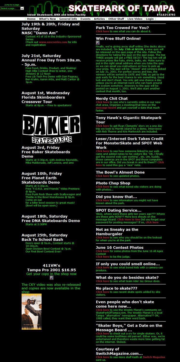 Wow, 10 years ago, this is what skateparkoftampa.com looked like.
