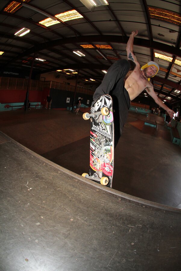 Dane has got the best board control on 50-50’s on rails but he knows how to skate a demo and have fun too. Dane, Pewter Blunt to Fakie.