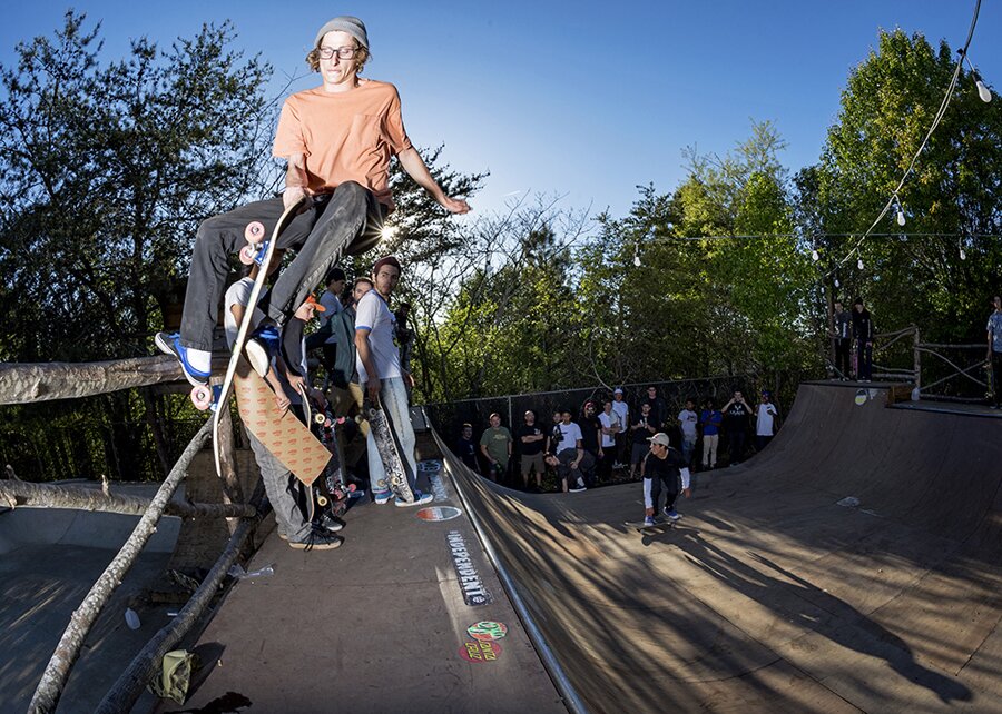 Following the Best Trick, Austin Curry gets the Mini-Ramp jam cooking with a Footplant Fakie on the LinkinLogs.