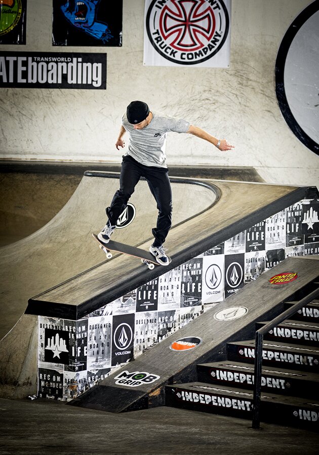 It’s all about doin’ hard tricks these days and finding even harder ways to get into 'em. Nate Greenwood Front 180s into a Switch Back 5-O.