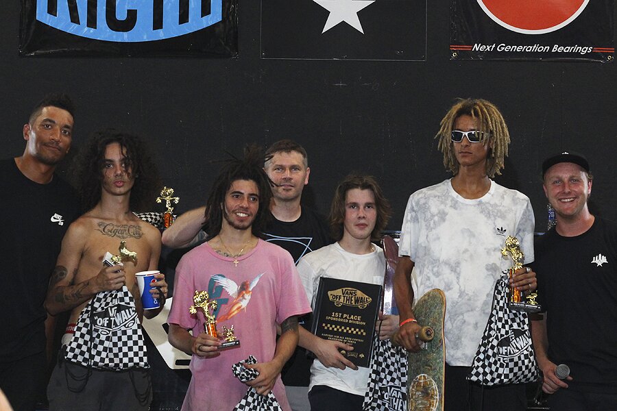 Sponsored Finals Division top 4 (L to R): Alejandro Burnell (5th), JC Mazza (3rd), Marse Farmer (1st), Malique Simpson (2nd), Maycon Mota (4th - not pictured).