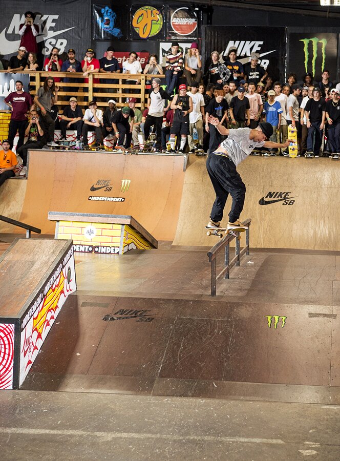 Marcos Montoya gets in some practice with a long drawn out Hurricane Grind.