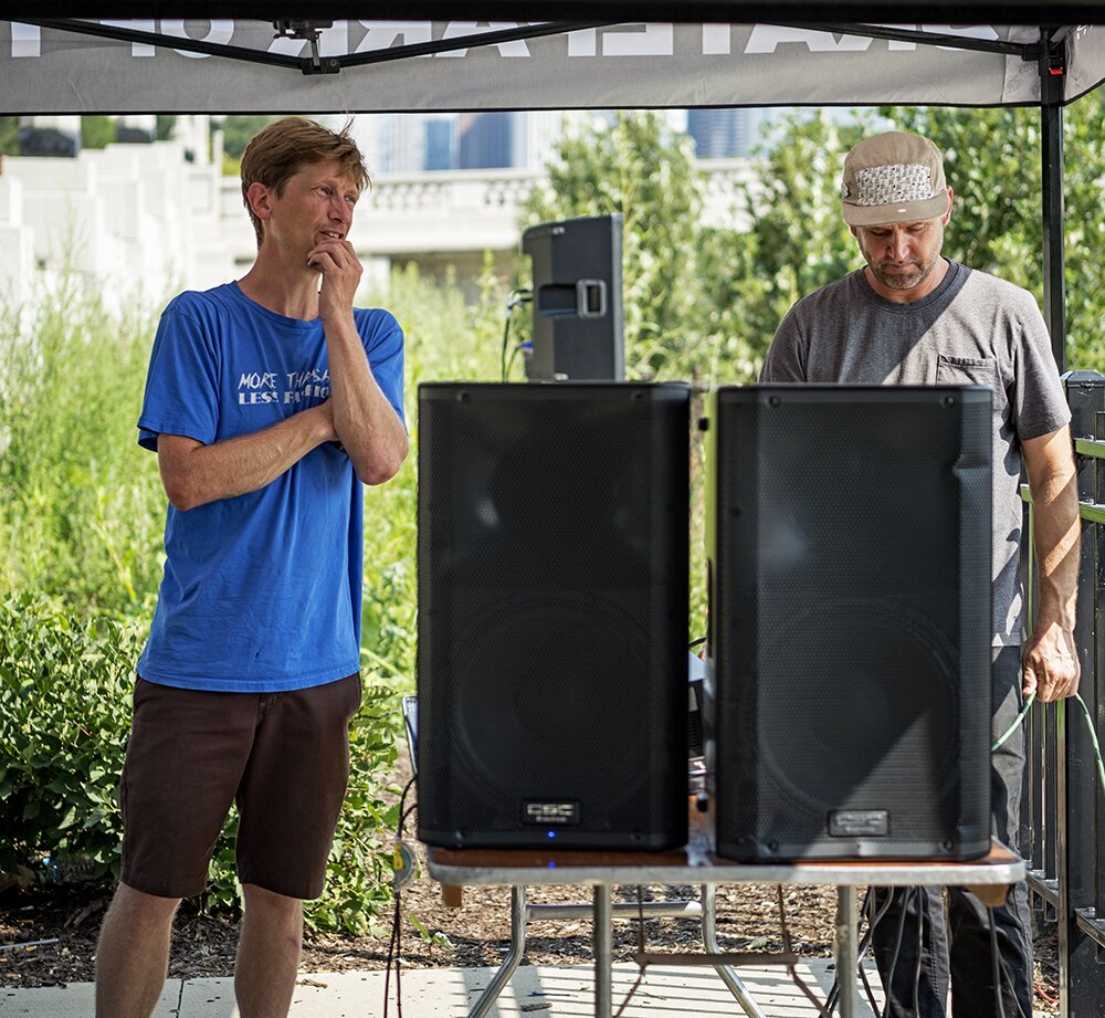 Brian trying to figure out whats louder.. the speakers or Nate Sherwood.