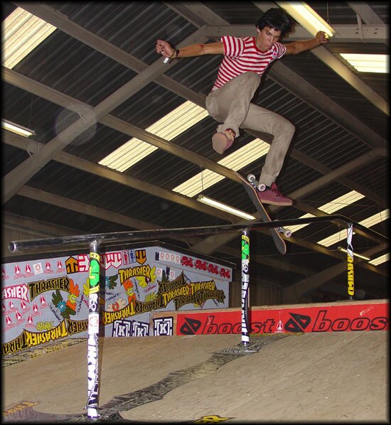Too bad the time wasn't extended on Best Trick. Corey Duffel was coming very close to sticking these kickflip frontside 50-50 attempts on the rail.