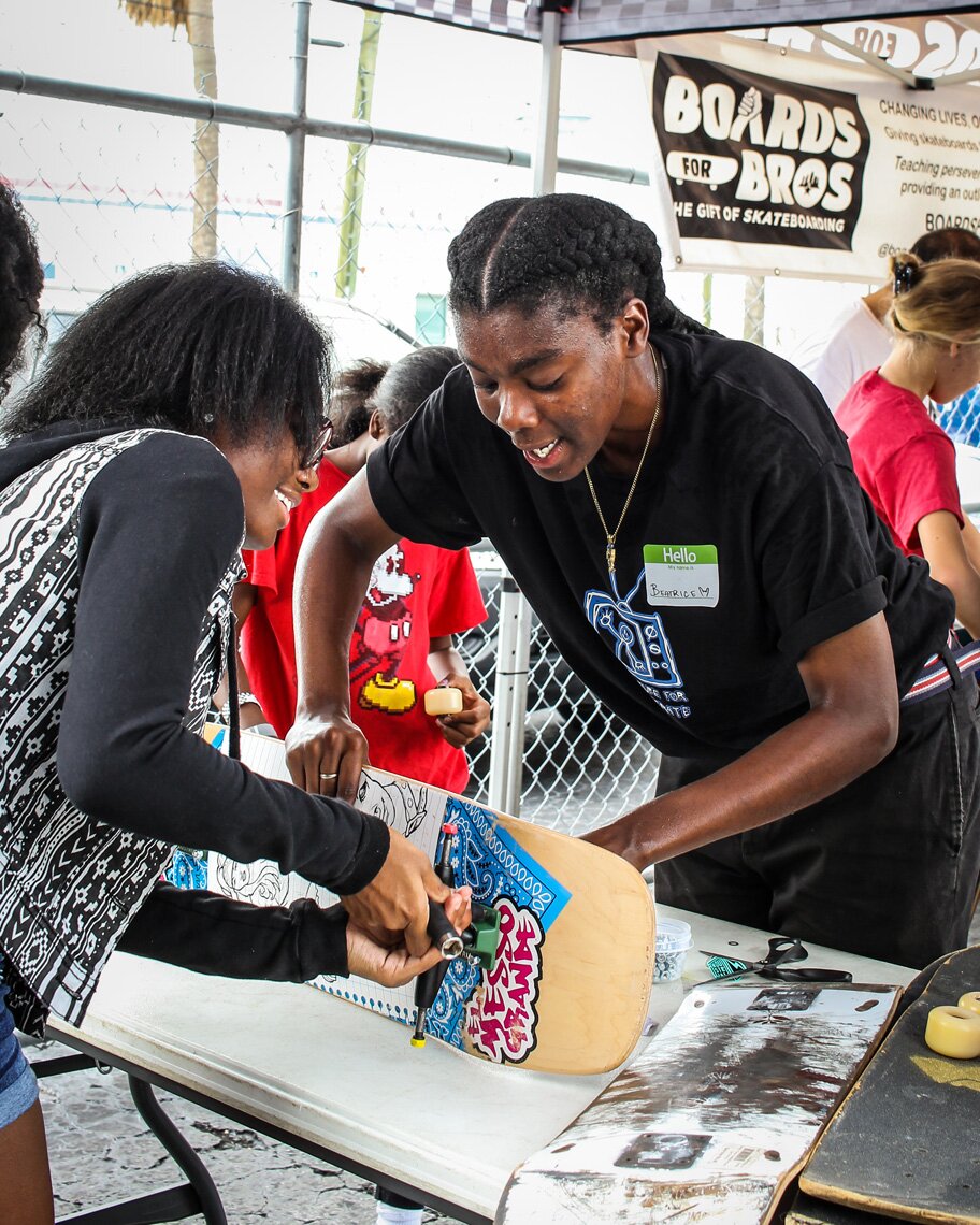 Here she is helping a group of young ladies assemble a new board.