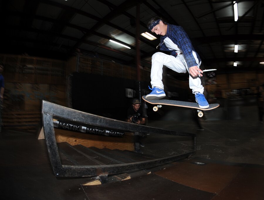 Ramante Cooper set the bar high during Best Trick comp with this proper kickflip crook down the hubba.