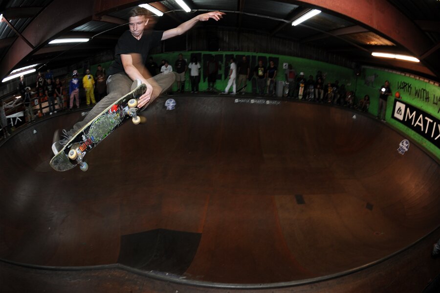 Alex "Dirt Weasel" Sandino was flying over the hip and grabbing all kinds of ways. This crail grab that Alex did was really impressive. Alex took third place in the bowl jam but hurt his ankle/foot near the end of the jam. We hope you get well soon buddy.