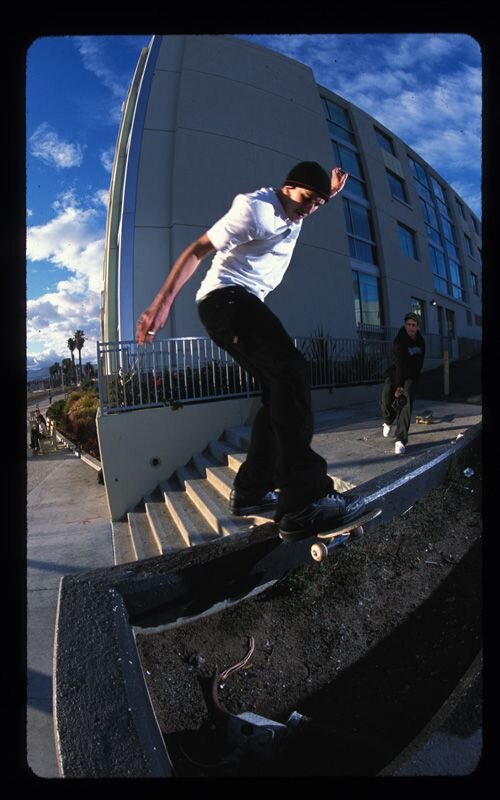 Derewenko's Darkroom Ryan Nix-Did everybody know that this ledge was doubled sided? Ryan Nix switch front boards it after tre-flipping full speed coming down hill.