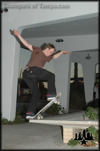 Pat Stiener took us to a few of his spots in Lakeland. This is a frontside bluntslide at a spot where Pat has learned a lot of his ledge tricks at