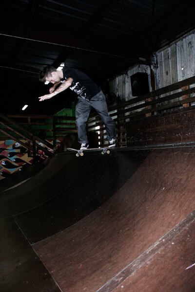 New Shop employee Aaron Austin was around helping with the kids. He's an old friend of mine and has been a ripping skater for as long as I've known him. Back tailslide before helping the kids.