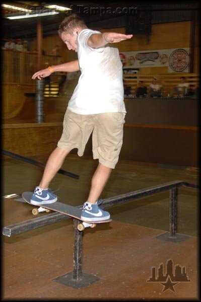 People who wear shorts a lot generally don't have successful careers in skateboarding, even if they totally rip. I don't make up these facts, I'm just delivering them to you. Some people get it, some don't. Or maybe I'm just retarded and I'm the one who doesn't get it. Oh well. Aaron Collier rips. At the end of the jam, he did switch heel front board perfect on the small rail. This is a regular front boardshorts