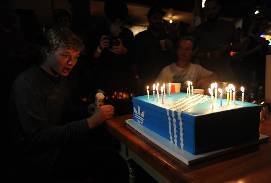 Alec Majerus turned 19 over the weekend, so Adidas surprised him with this Adidas shoebox cake. How cool is that? It was delicious. Before leaving the skatepark, Alejandro had to get a photo. This no comply over the bank to bank is proper! Back to the hotel to recharge the batteries and head to the pizza party in East Atlanta.