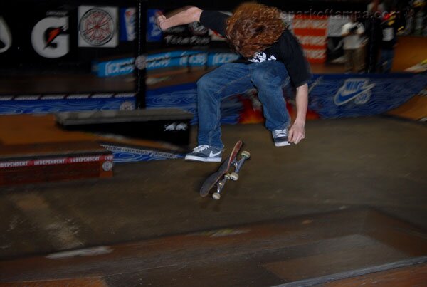 Adrien Bulard got second in AmsterDamn Am so he was already in the Semi-Finals at Tampa Am. You can't see it here, but he's got the lazy leg on 360 flips for sure.