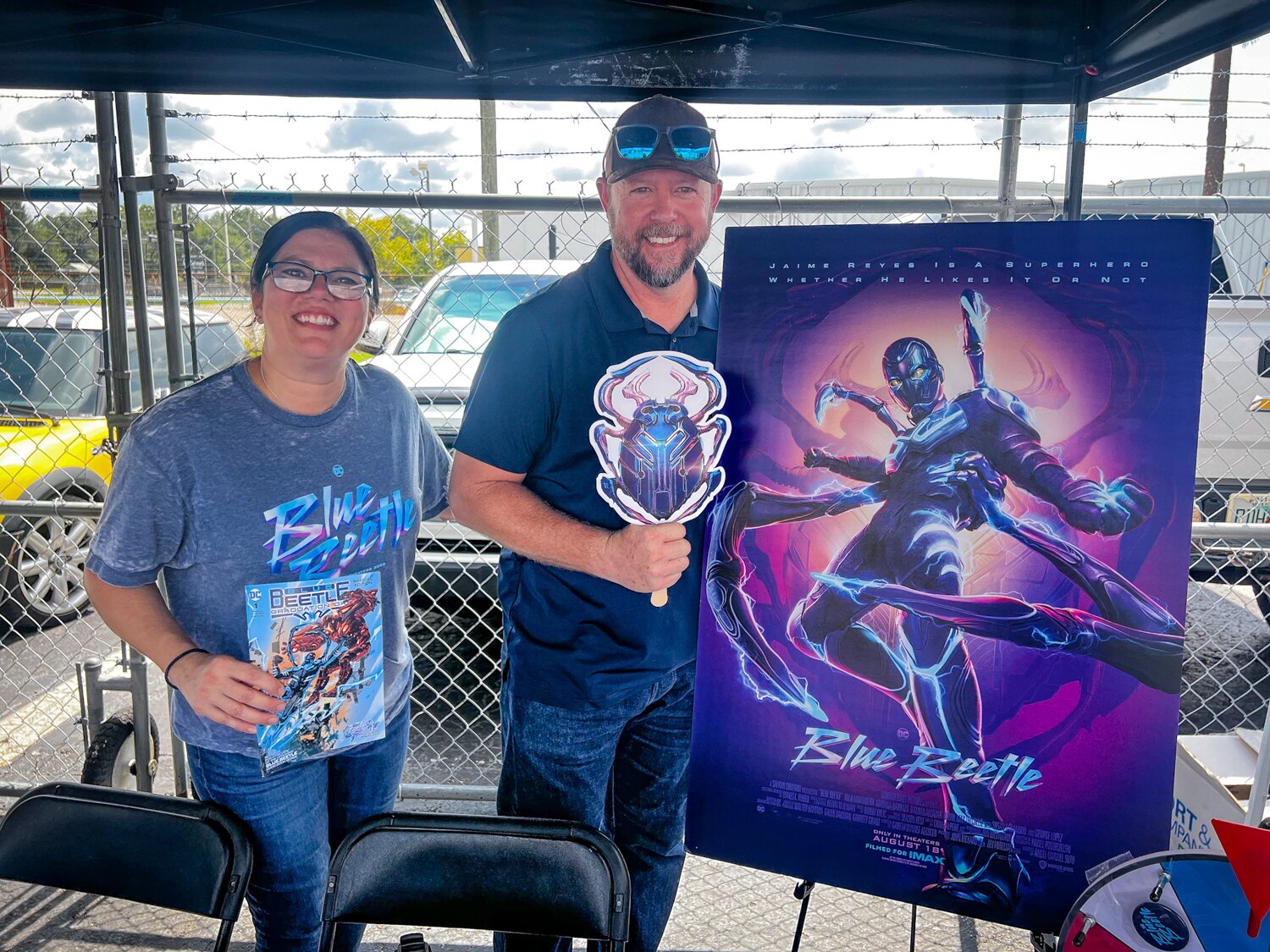 Blue Beetles crew was all smiles in the courtyard.