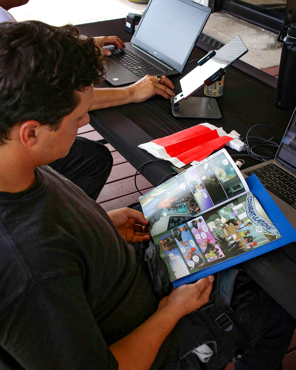 ...and over at registration we've got our dude DJ reading Blue Beetle comics. What gives man!