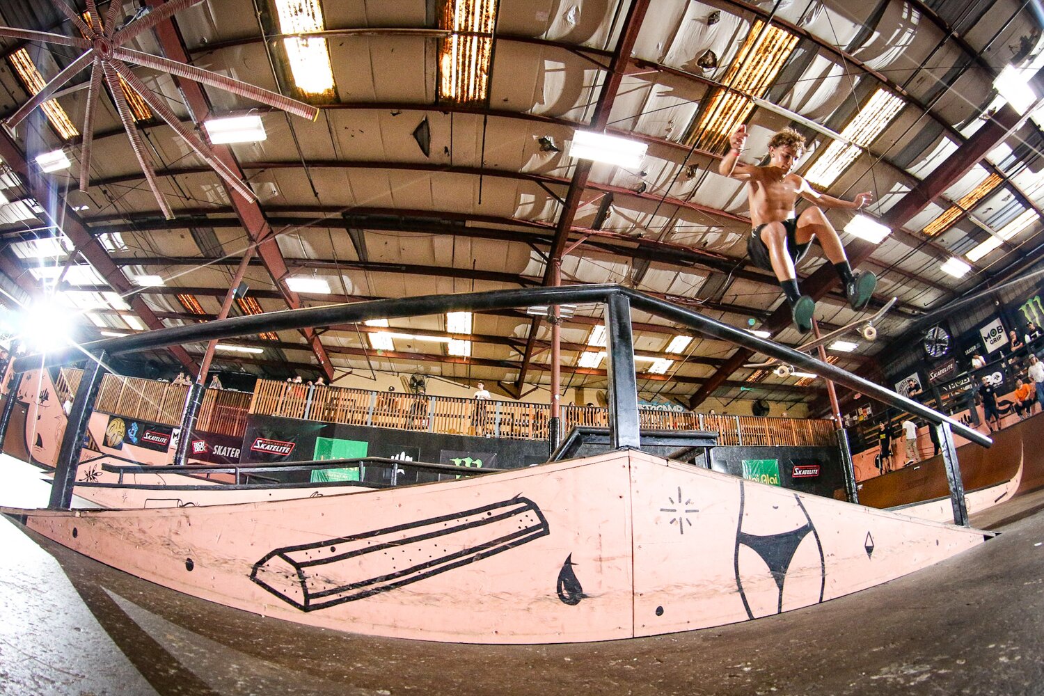 Quinn Harbin traveled to Tampa from Virginia and didn't leave empty handed. Kickflip front board on the a-frame